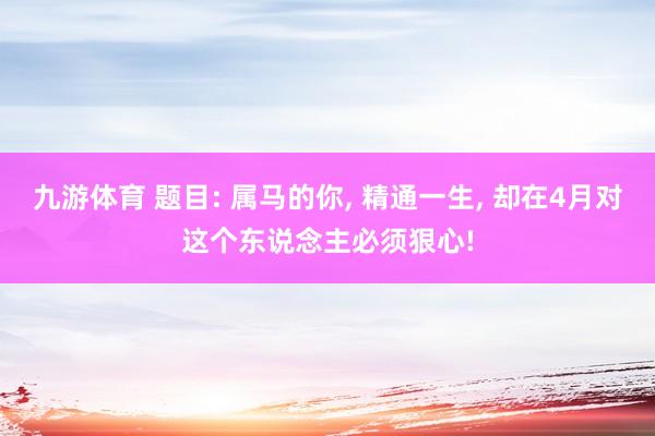 九游ninegame 属猴的听劝! 4月中, 这个拖垮你的东说念主, 再留即是害我方