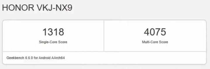 据悉,一款型号为 VKJ-NX9的荣耀旗下新机在近日现身了 GeekBench 跑分。认证列表中并未显现具体的居品系列信息,但联系预计以为其指的是荣耀 600 手机。在 GeekBench 6.6.0 版块中,单核收获 1318 分,多核收获 4075 分。