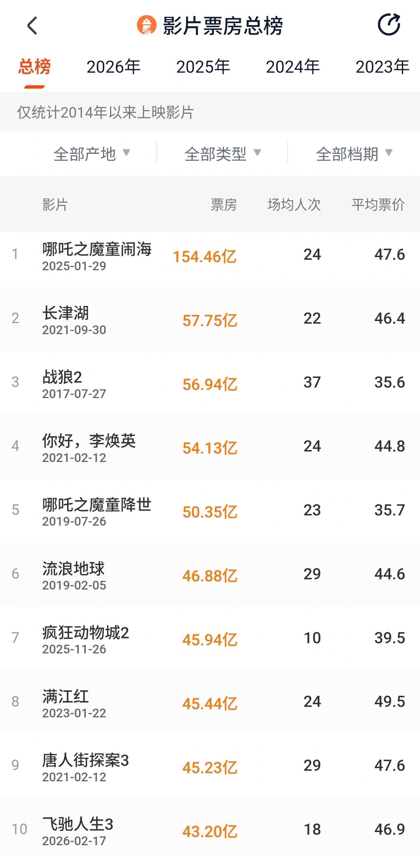 IT之家整理影片票房总榜如下: