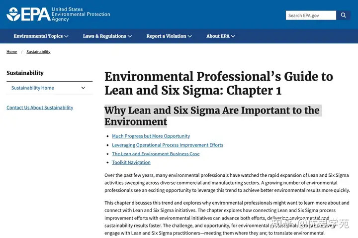 如若把视角再拉高小数,就会发现精益与六西格玛不仅影响交期、成本和客户欢乐度,也深远影响资源使用、欺凌退缩、动力虚耗、材料奢侈、返工报废,致使影响企业能否在可抓续发缓期间保抓竞争力。也正因为如斯,好意思国环保署(EPA)在其面向环境专科东谈主士的指南中,专诚盘考了一个关节问题:为什么精益和六西格玛对环境很进犯。