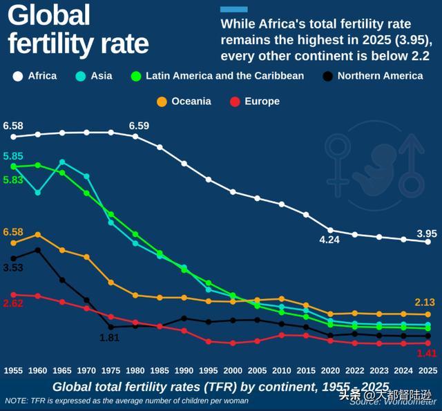 至于非洲,跟着城市化鼓励、女性教化水平普及、社会保险迟缓斥地,生养率也一定会降下来。