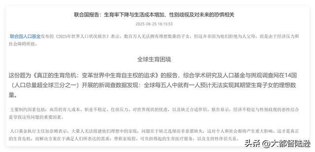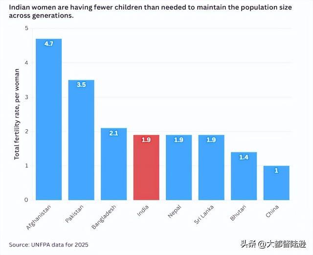 前段时辰采集国东说念主口基金会发布了《2025年寰宇东说念主口现象论说》,成果印度的总生养率还是跌到了1.9。