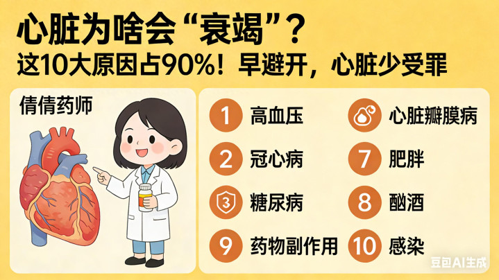 今天这篇,倩倩药师把最常见、最容易被冷漠的心衰诱因一次性讲透,专科准确、阳春白雪,提议全家王人望望,早逃避,隔离心衰!