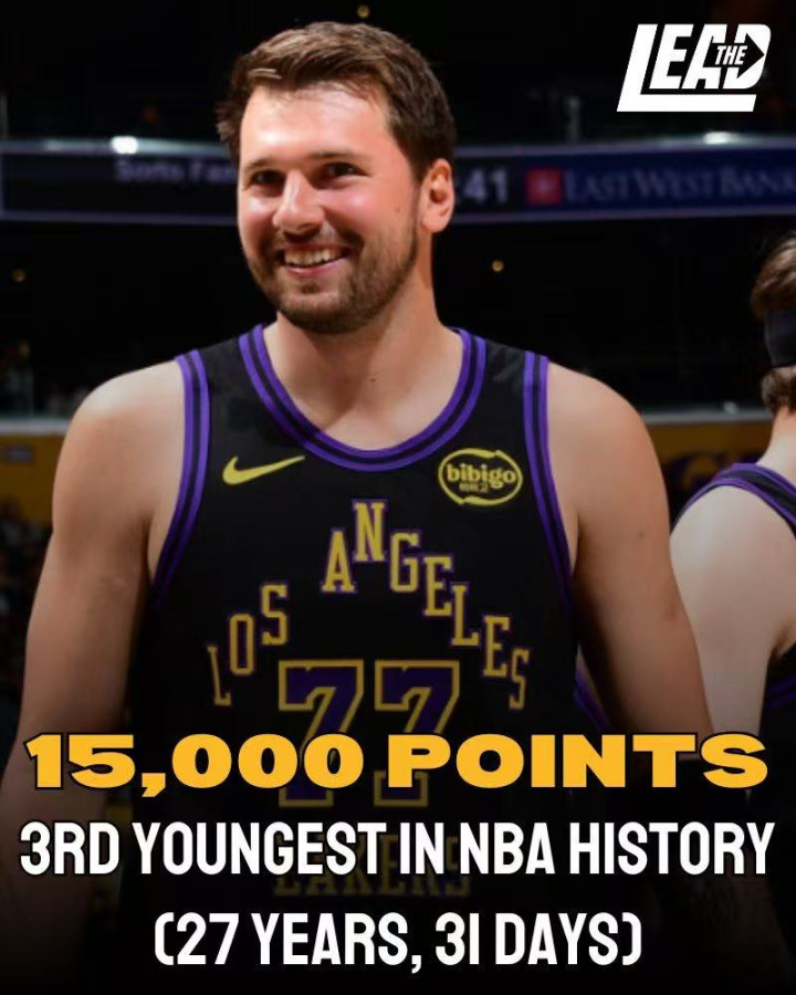 27岁31天的东契奇成为NBA历史第三年青已毕15000分的球员,高出科比(27岁136天),仅次詹姆斯(25岁79天)、杜兰特(26岁78天)。