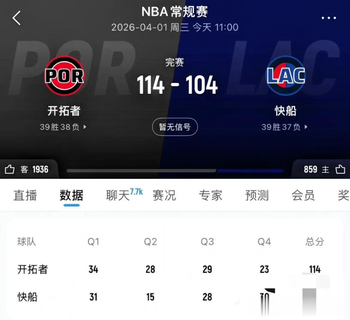 快船队在成例赛前75轮中得到39胜36负,在西部定约排行第8,开导者队在成例赛前76轮中得到38胜38负,在西部定约排行第9。两支球队胜场差为0.5场。首节比赛放置,计分板披露34比31,开导者队跨越3分。第二节比赛中,开导者队打出一波聚积得分的攻势。该节中段,江南体育比分改写为56比39,开导者队净胜17分。