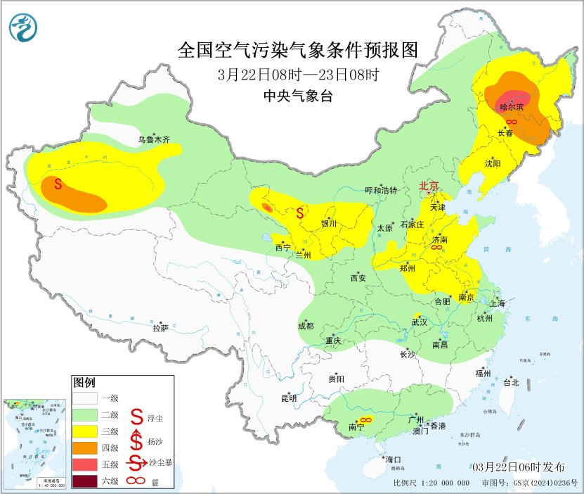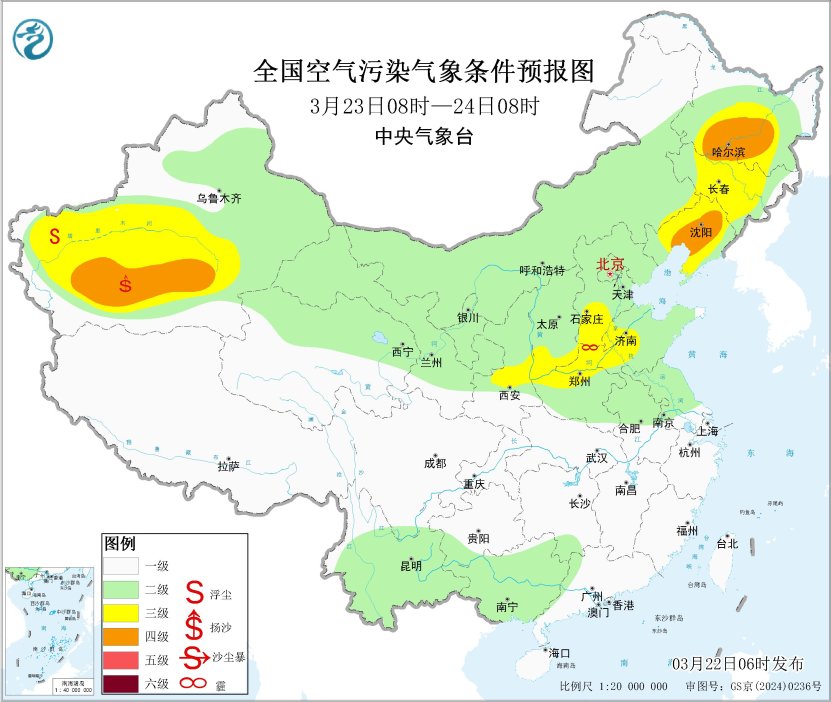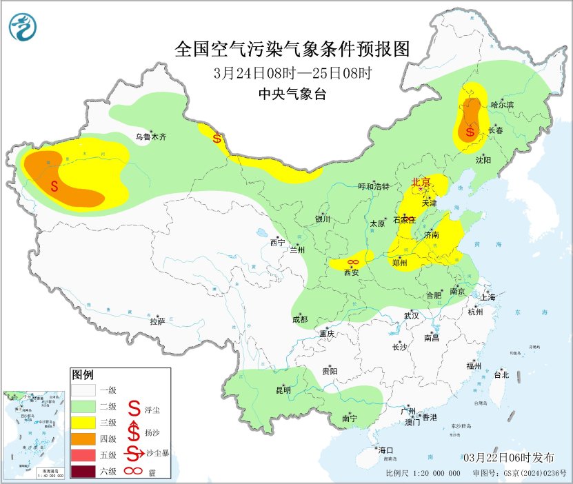 将来一周,区域中南部大气扩散条目一般,部分地区将有轻至中度霾。此外,24日,辽宁西北部、吉林西部等地有扬沙或浮尘天气。