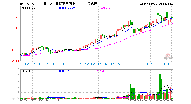 九游体育 化工行业ETF易方达(516570)开盘涨1.27%, 重仓股万华化学跌0.04%, 中国石油涨1.65%